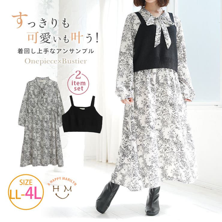 【10%OFFクーポン!11/27(木)1:59まで】A Happy Marilyn すっきり可愛い 花柄ワンピース×ビスチェ SET 大きいサイズ レディース セットアップ 上下セット コーデセット LL 3L 4L 秋 秋物 秋服 冬 冬物 冬服 ぽ 5,590円 セール終了日 12/31 23:59 [SHOPLIST] | 10%OFF