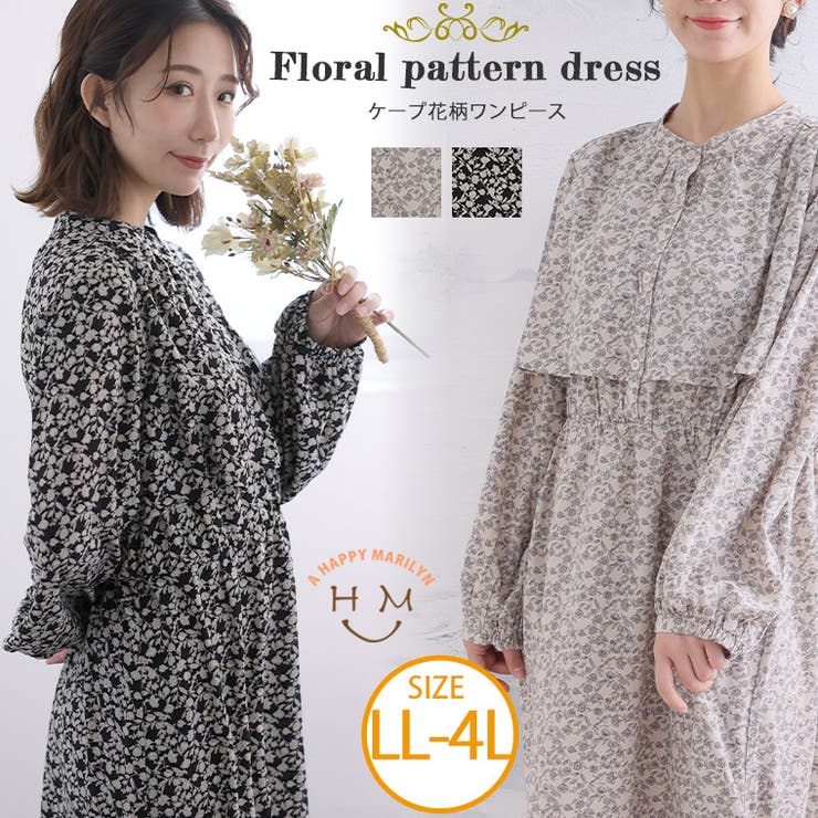 【10%OFFクーポン!11/27(木)1:59まで】A Happy Marilyn ラファモプロデュース ケープ付き 花柄ワンピース 大きいサイズ レディース ワンピース れいぼん ワンピ デザインワンピ LL 3L 4L 5L 6L 秋 秋物 秋服 3,990円 セール終了日 12/31 23:59 [SHOPLIST] | 10%OFF