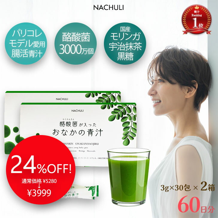 【RakutenスーパーSALE☆24%OFF!】 腸活 青汁 60日分 酪酸菌が入ったおなかの青汁 2箱 無添加 国産 粉末 健康青汁 飲みやすい モリンガ 酪酸菌 ダイエット サプリメント サプリ 野菜不足 子供 食物繊維 善玉菌 おいしい 大麦若葉 健康飲料粉末 大麦若葉青汁 腸活美容 3,999円 送料無料 セール終了日 12/11 01:59 レビュー平均4.66(56件) [NACHULI楽天市場店] | 23%OFF