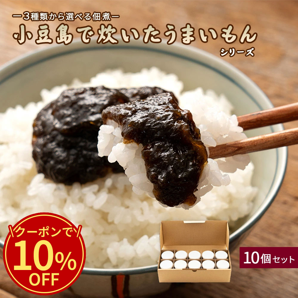 \今だけ!クーポン利用で10%OFF/ 佃煮 「3種類から選べる小豆島で炊いたうまいもん 佃煮 10個セット」 [ 天然 岩のり 入りのり佃煮 (63681) ゆず胡椒のり (63691) うまいでしょうが (63701) 送料無料 海苔の佃煮 佃煮セット 食品 ごはんのお供 グルメ ] セール SALE 3,980円 送料無料 セール終了日 11/27 01:59 レビュー平均5(3件) [元気いっぱい!小豆島タケさん農園] | 10%OFF