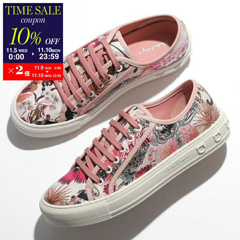 【11/10-23:59迄10%OFFクーポン対象】FERRAGAMO フェラガモ スニーカー 0737448 BORG PRINT ボルグ レディース フローラルプリント ロゴ ローカット プラットフォーム レースアップ シューズ 靴 PK-WH【cp_ten】 24,800円 送料無料 [インポートセレクトmusee] | 10%OFF