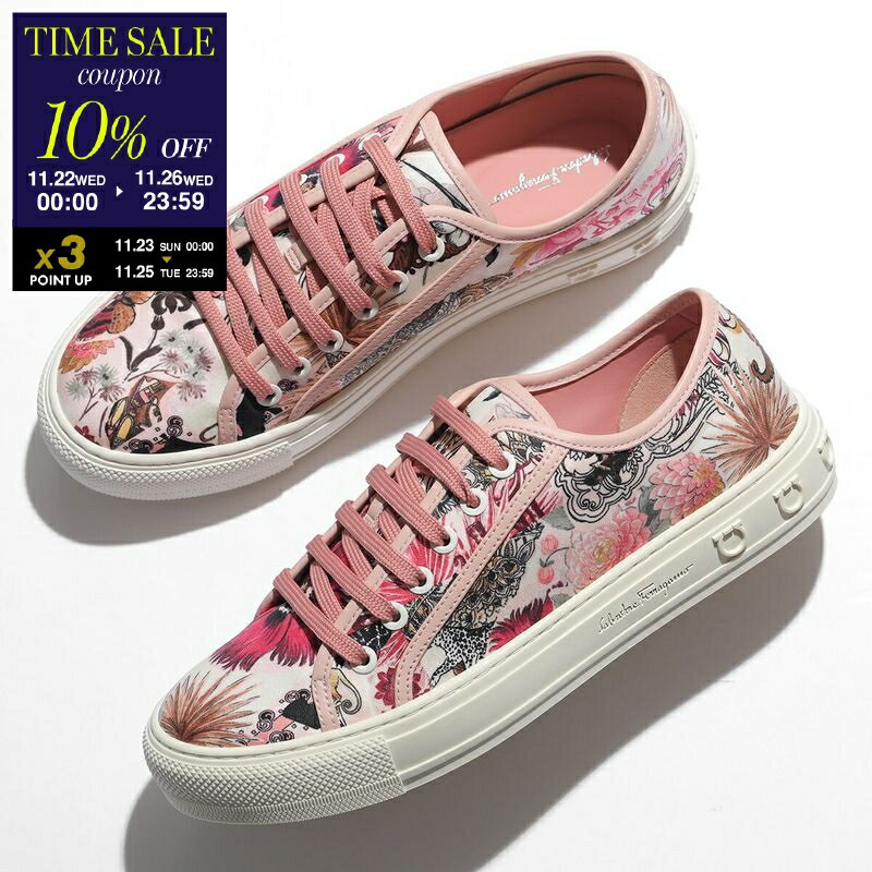 【ブラックフライデー・11/26-23:59迄10%OFFクーポン】FERRAGAMO フェラガモ スニーカー 0737448 BORG PRINT ボルグ レディース フローラルプリント ロゴ ローカット プラットフォーム レースアップ シューズ 靴 PK-WH【cp_ten】 24,800円 送料無料 [インポートセレクトmusee] | 10%OFF