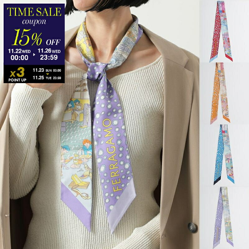 【ブラックフライデー・11/26-23:59迄15%OFFクーポン】FERRAGAMO フェラガモ スカーフ 32 0908 776463 776464 776465 776466 776467 レディース シルク バンドゥ ロゴ ドット柄 カラー5色【cp_fifte】 22,800円 送料無料 レビュー平均5(2件) [インポートセレクトmusee] | 10%OFF