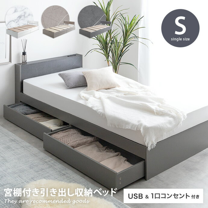 【MAX50%OFF! 11/30 0:00 ~ 23:59まで★】シングル ベッド 収納付き 宮棚付き すのこ シングルベッド ロー マットレス付き ポケットコイル かわいい 引き出し2杯 大理石柄 ストーン柄 コンセント USB 通気性 ヘッドボード コンパクト 23,499円 レビュー平均4(1件) [インテリアショップ・イーナ] | 50%OFF
