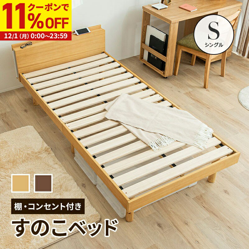 【11%OFFクーポン配布中★12/1に使える】 すのこベッド ウレタンマットレス付 ベッド シングル コンセント付 頑丈 シンプル 天然木フレーム 親ベッド 単品 高さ2段階 脚 高さ調節 敷布団 シングルベッド すのこ 木製 29,880円 [家具・インテリアのMINT楽天市場店] |