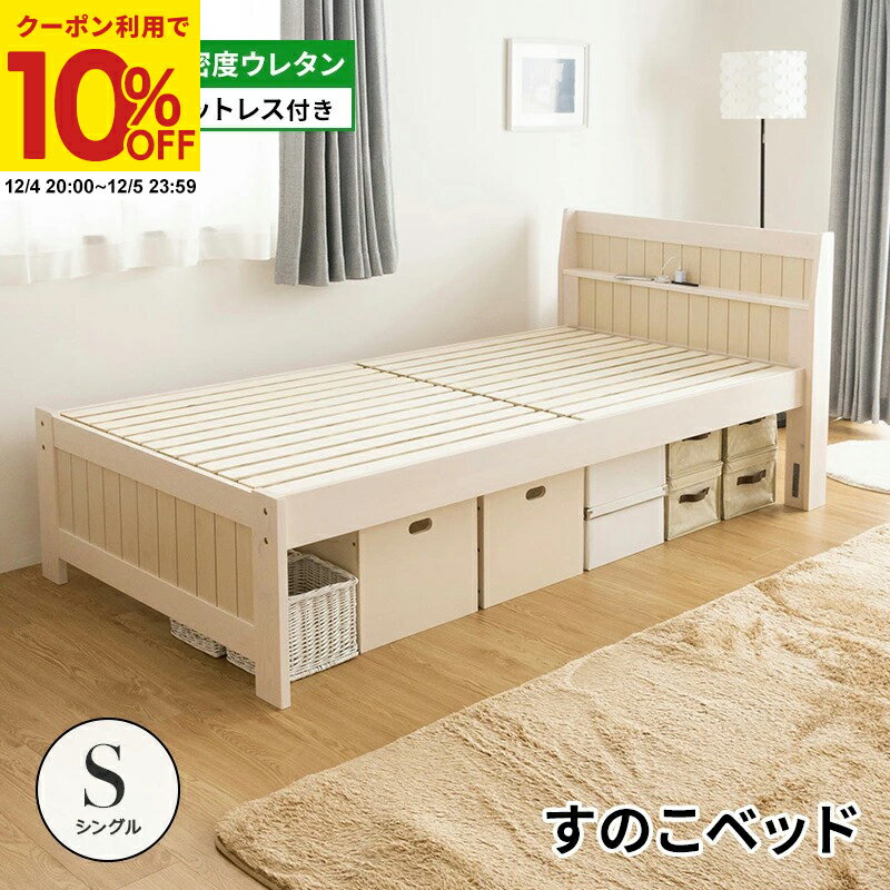 【クーポンで10%OFF★12/4 20:00〜12/5 23:59】 すのこベッド ウレタンマットレス付 ベッド シングル コンセント付 頑丈 シンプル 天然木フレーム 親ベッド 単品 高さ2段階 脚 高さ調節 敷布団 シングルベッド すのこ 木製 29,880円 [家具・インテリアのMINT楽天市場店] | 10%OFF