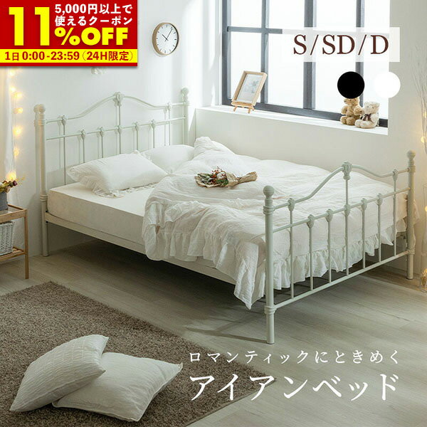 【クーポンで11%OFF★12/1 0:00〜23:59】 ベッド シングル セミダブル ダブル ベッドフレーム アイアンベッド ホワイト ブラック シングルベッド ベット フレームのみ お姫様 おしゃれ パイプベッド スチール 姫系 かわいい プリンセス 姫 アンティーク 24,990円 レビュー平均4(18件) [インテリアショップファンボヌール] | 11%OFF
