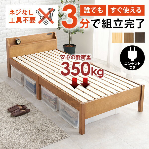 【50%OFFクーポンあり★20日20時〜先着2名】<約3分で組立完了>工具不要&ネジ無し頑丈ベッド【NEJILESS】ネジレス 宮棚つきタイプ(すのこベッド シングル 敷布団対応 耐荷重350kg 頑丈 コンセント付き 宮棚付き 棚付き 簡単組立 ベッドフレームのみ シングルベッド すのこ 29,990円 レビュー平均1(1件) [パナスタイル] | 50%OFF