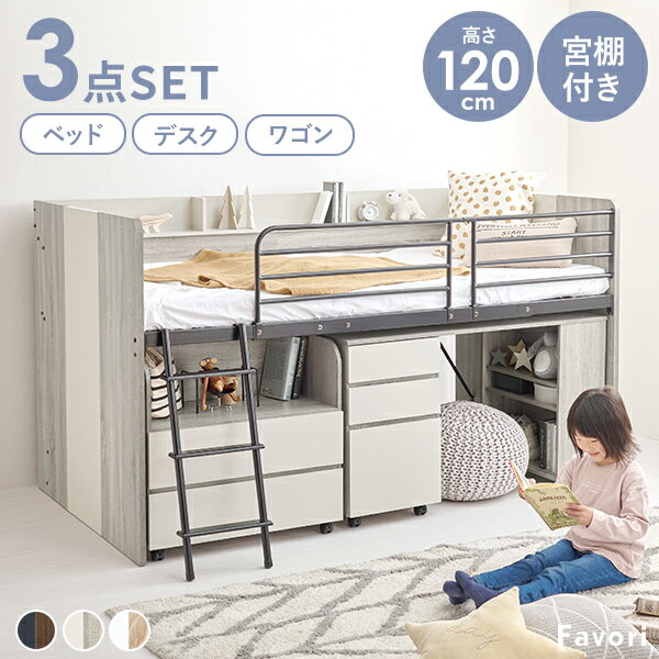 【50%OFFクーポンあり★20日20時〜先着2名】【レビュー特典あり】システムベッド 3点セット[ロフトベッド&デスク&ワゴン] 宮棚つき【Favori】ファヴォリ(子供部屋 ロフトベット ロータイプ シングルベッド 子供 システムベット 学習机 ランドセルラック おしゃれ 北欧 シ 69,990円 レビュー平均3.5(2件) [パナスタイル] | 50%OFF