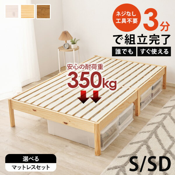 【50%OFFクーポンあり★20日20時〜先着2名】<約3分で組立完了>工具不要&ネジ無しベッド ヘッドレス 頑丈【NEJILESS】ネジレス(すのこベッド 耐荷重350kg ベッド マットレス付き シングル マットレスセット ベッドフレーム 簡単組立 シングルベッド マットレス付 白 おしゃ 19,990円 レビュー平均4.71(7件) [パナスタイル] | 50%OFF