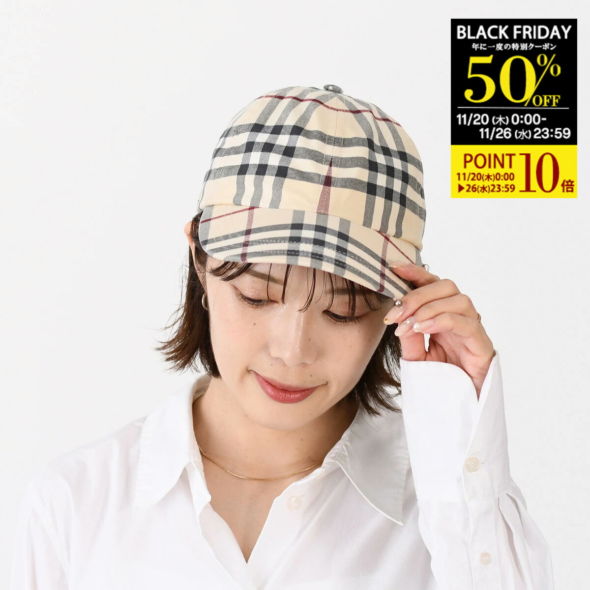 【50%OFFクーポン&P10倍】BURBERRY バーバリー 帽子 キャップ 8073370 チェックコットン ベースボールキャップ レディース ベージュ ユニセックス チェック柄 ベージュ お揃い ペア 29,300円 送料無料 [セレクトショップFELICE] |