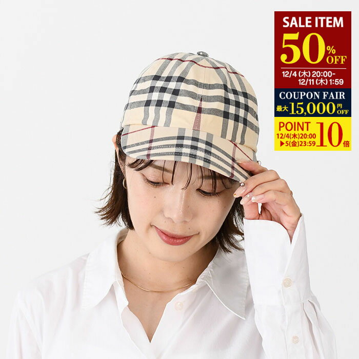 【50%OFF対象&28H限定P10倍】BURBERRY バーバリー 帽子 キャップ 8073370 チェックコットン ベースボールキャップ レディース ベージュ ユニセックス チェック柄 ベージュ お揃い ペア 14,650円 送料無料 セール終了日 12/11 01:59 [セレクトショップFELICE] | 50%OFF