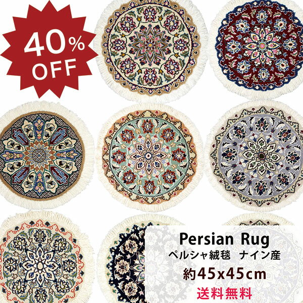 【40%OFF!楽天スーパーSALE限定!18,480円→11,088円】ペルシャ絨毯 ナイン 約45cm x 45cm 座布団サイズ 円形 ラウンド 唐草模様 ウール シルク 羊毛 絹 高級 ホットカーペット対応 床暖房対応 オールシーズン 一年中 現品限り 一点もの 手織り ギフト 11,088円 セール終了日 12/11 01:59 [絨毯専門店 SATHI RUGS] |