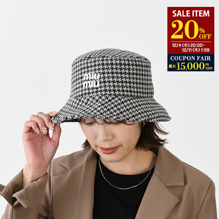 【20%OFF対象&28H限定P10倍】MIU MIU ミュウ ミュウ バケットハット 帽子 バケハ フロントロゴバケットハット 5HC196 2F87 レディース グレー ブラック ロゴ ウール 格子柄 42,240円 送料無料 セール終了日 12/11 01:59 [セレクトショップFELICE] | 50%OFF