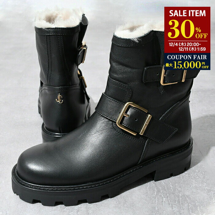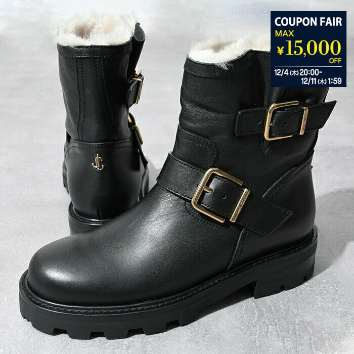 【最大15,000円OFFクーポン】JIMMY CHOO ジミーチュウ ブーツ シューズ YOUTH II バイカーブーツ YOUTHIIOHI レディース BLACK ブラック 黒 レザー ファー ロゴ 靴 ラバーソール 54,800円 送料無料 [セレクトショップFELICE] | 50%OFF