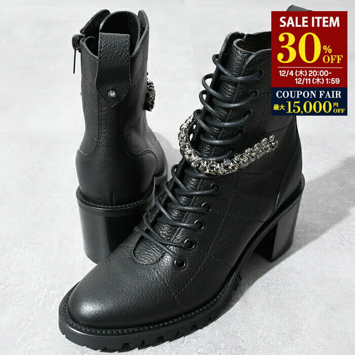 【30%OFF対象商品】JIMMY CHOO ジミーチュウ ブーツ シューズ Cruz 65 レースアップ コンバットブーツ CRUZ65GTC レディース BLACK ブラック 黒 クリスタル ステッチ サイ 69,580円 送料無料 セール終了日 12/11 01:59 [セレクトショップFELICE] | 50%OFF