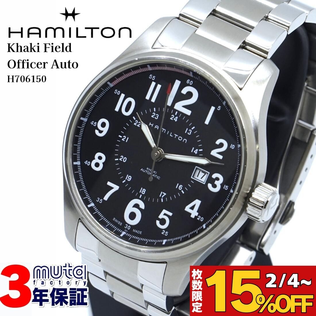 \枚数限定15%OFF配布中/ハミルトン カーキ フィールドオフィサー Ref.H706150 外装仕上 OH 自動巻き ラウンド 円形 ビンテージ 腕時計 ギフト HAMILTON Khaki Field Officer シースルーバック 美品 おしゃれ 黒 ファッション メンズ 実用的 1年保証 W0217 84,700円 送料無料 [mutafactory楽天市場店] | 13%OFF