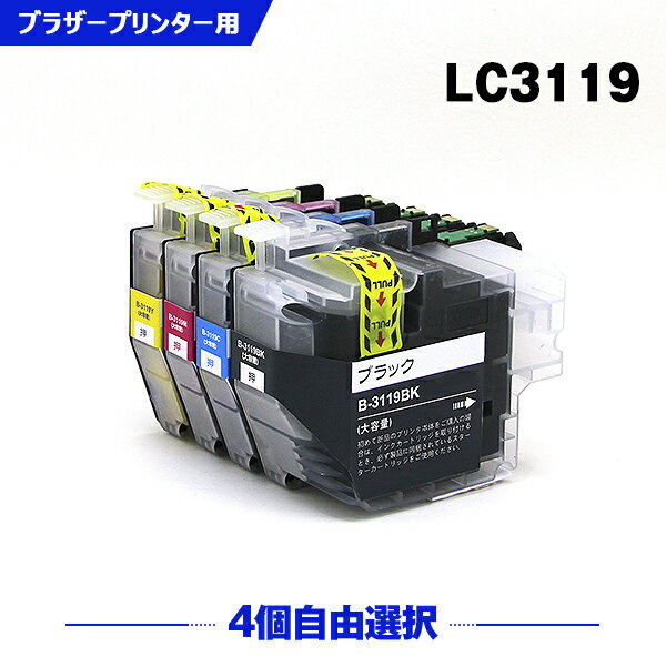 \週末限定15%OFF/ ブラザー用 LC3119 LC3119-4PK 4個選べる・自由選択 黒1個のみ 残量表示機能付 互換インクカートリッジ 高品質 純正と同じ容量 3年保証付き 染料 LC3119BK LC3119C LC3119M LC3119Y MFC-J5630CDW MFC-J6583CDW