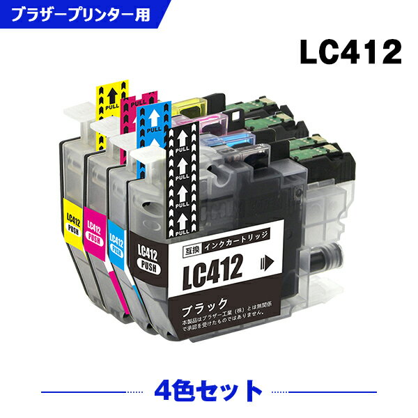 \週末限定15%OFF/ ブラザー用 LC412 LC412-4PK 4色セット 残量表示機能付 互換インクカートリッジ 高品質 純正と同じ容量 3年保証付き 染料 LC412BK LC412C LC412M LC412Y MFC-J7100CDW MFC-J7300CDW