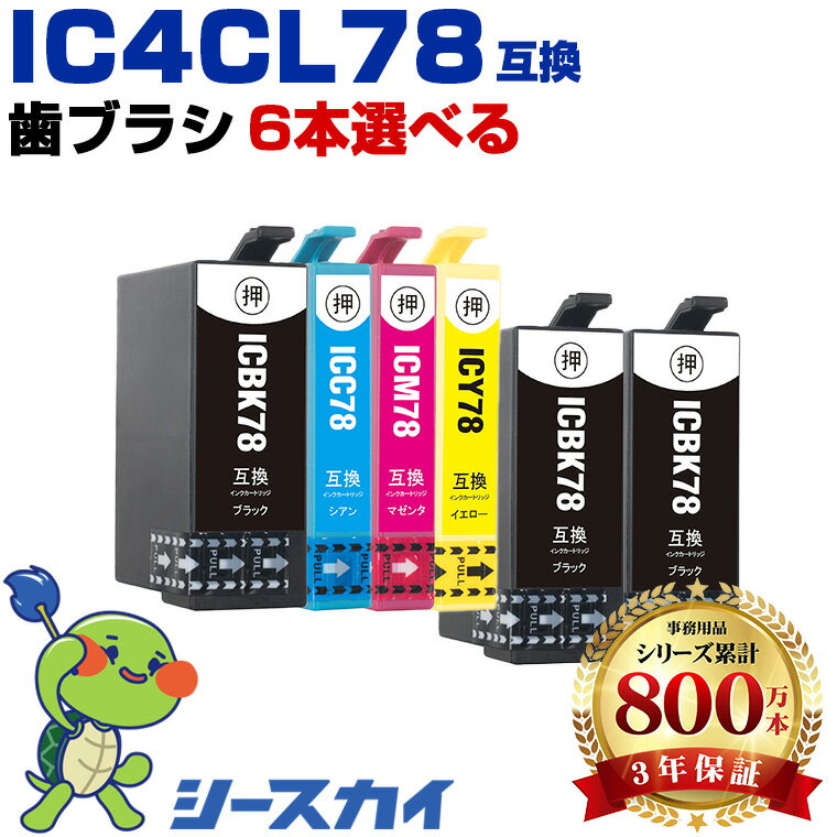 \週末限定15%OFF/ エプソン用 IC78 歯ブラシ IC4CL78 4色6個選べる・自由選択 残量表示機能付 互換インクカートリッジ 高品質 純正と同じ容量 3年保証付き 染料 ICBK78 ICC78 ICM78 ICY78 PX-M650F PX-M650A PX-M65C9