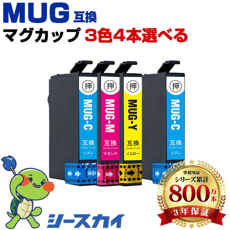 \週末限定15%OFF/ エプソン用 MUG マグカップ MUG-C MUG-M MUG-Y 3色4個選べる・自由選択 残量表示機能付 互換インクカートリッジ 高品質 純正と同じ容量 3年保証付き 染料 EW-052A EW-452A